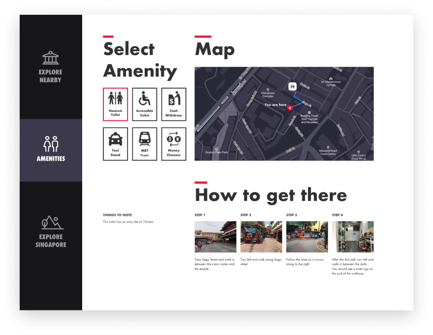 Any product is only good if people can actually use it. We took our prototype to Chinatown and asked actual tourists to use it, then made adjustments to it based on their feedback. By the end of the tests, we had cut task error rates by 80%.