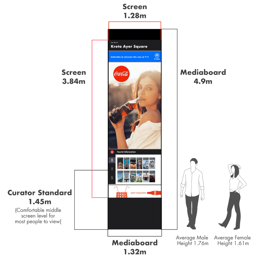 As the interactive display is part of a 4.9m display, we optimized the height based on on average male and female height. We placed the middle of the screen at the curator’s standard so that it is comfortable for most people to use.