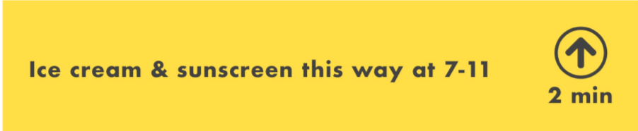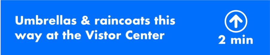 With the BBV display, we had a large canvas with which to display timely information. A situational banner, placed for maximum visibility at the top of the 4 metre tall display, lets visitors know where to find relief from Singapore’s weather: be it shelter from a thunderstorm, or an ice-cold drink for the heat.