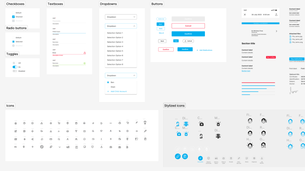 When creating components and pages, we considered how every component and design could be made more flexible, such that it can serve more functions than a specific niche purpose. This is to prevent the component library from bloating unnecessarily, maintain consistency through the app, and maintain design familiarity amongst the users.